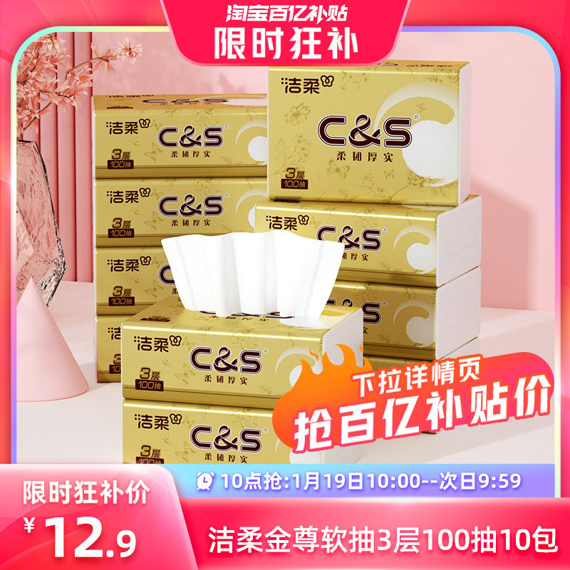 旗舰店【10点抢】洁柔金尊无香抽纸纸巾卫生纸餐巾纸3层100抽10包擦手纸