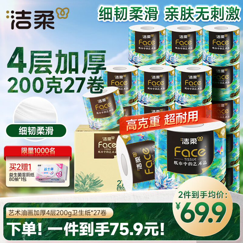 自营洁柔有芯卷纸 艺术油画Face4层200克*27卷 实惠 卫生纸卷筒纸纸巾整箱