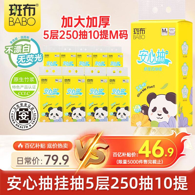 自营斑布悬挂式抽纸 5层250抽*10提M码 原生竹浆 耐用 面巾纸 挂抽 箱装