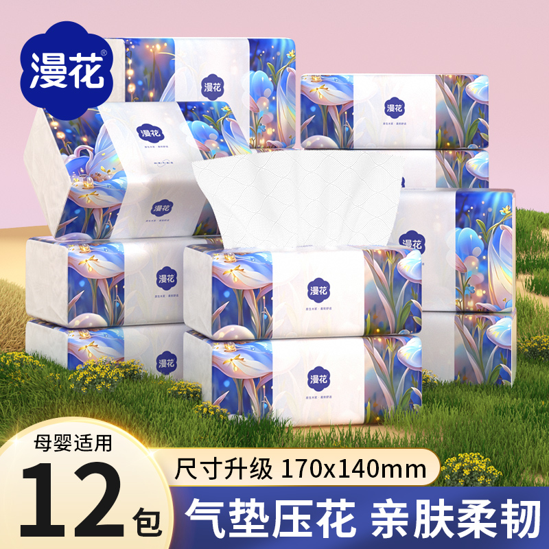 旗舰店漫花12大包抽纸卫生纸家用实惠装擦手纸原木4层加厚面巾纸亲肤