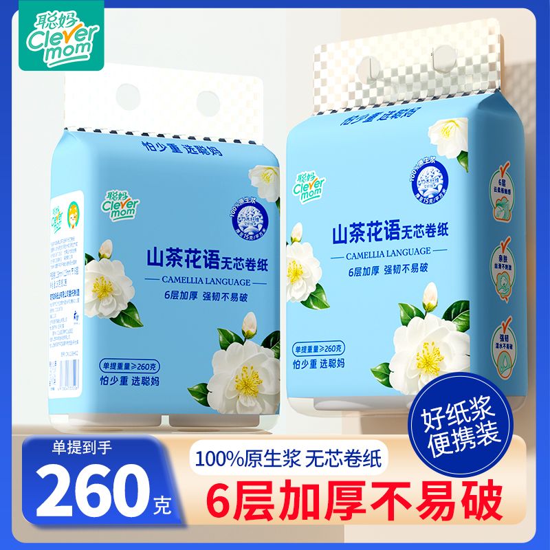 旗舰店【6层加厚】聪妈无芯卷纸山茶花语卫生间家用实惠装卫生纸260克/提