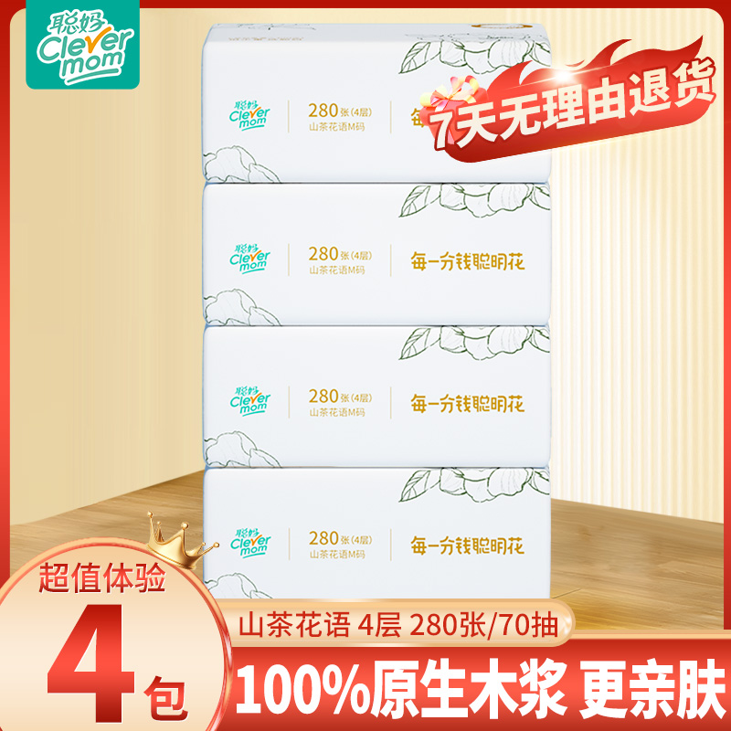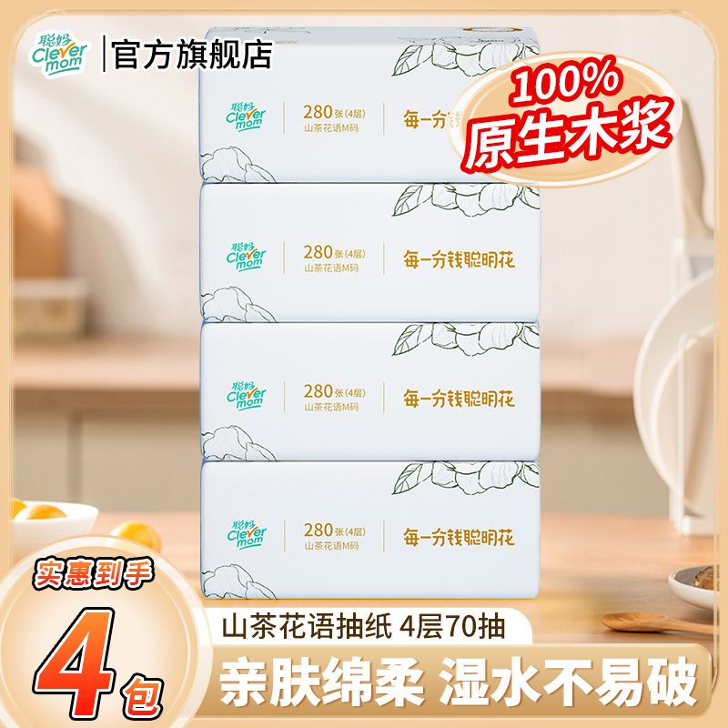 旗舰店聪妈140克4层加厚高端强韧抽纸抽取式家用面巾纸绵柔干湿两用亲肤