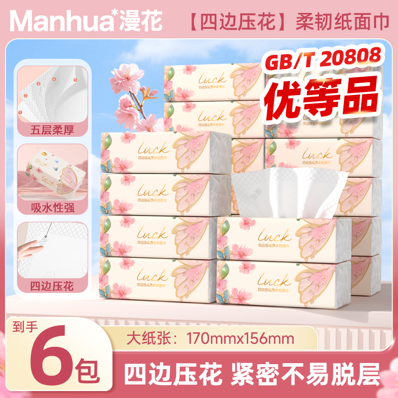 旗舰店【拍3件享6包】漫花抽纸70抽*2包无印花抽纸实惠装抽纸实惠家用纸