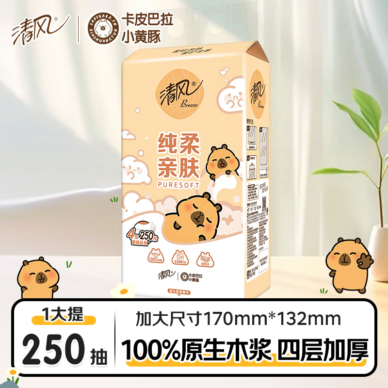 旗舰店清风卡皮巴拉挂抽家用大包实惠纸巾面巾纸宿舍家用装卡皮巴拉抽纸