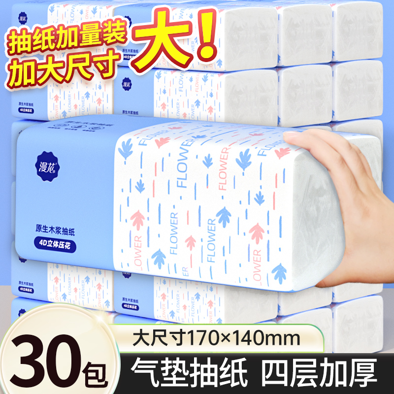 旗舰店漫花30包【20包+10包】抽纸纸巾气垫家用纸巾加长加大卫生纸大号