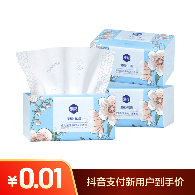【抖音支付0.01元】漫花抽纸3包无印花抽纸巾5层加厚400张加量装
