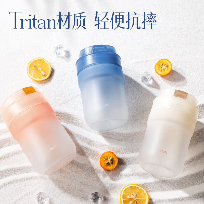 自营得力(deli)塑料杯 男女生便携tritan材质咖啡杯旋盖双饮水杯420mL 白色LL312