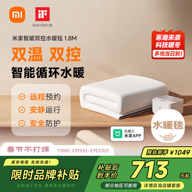 自营米家双人智能速热静音小米手机远程预约电热毯左右双控水暖毯1.8米