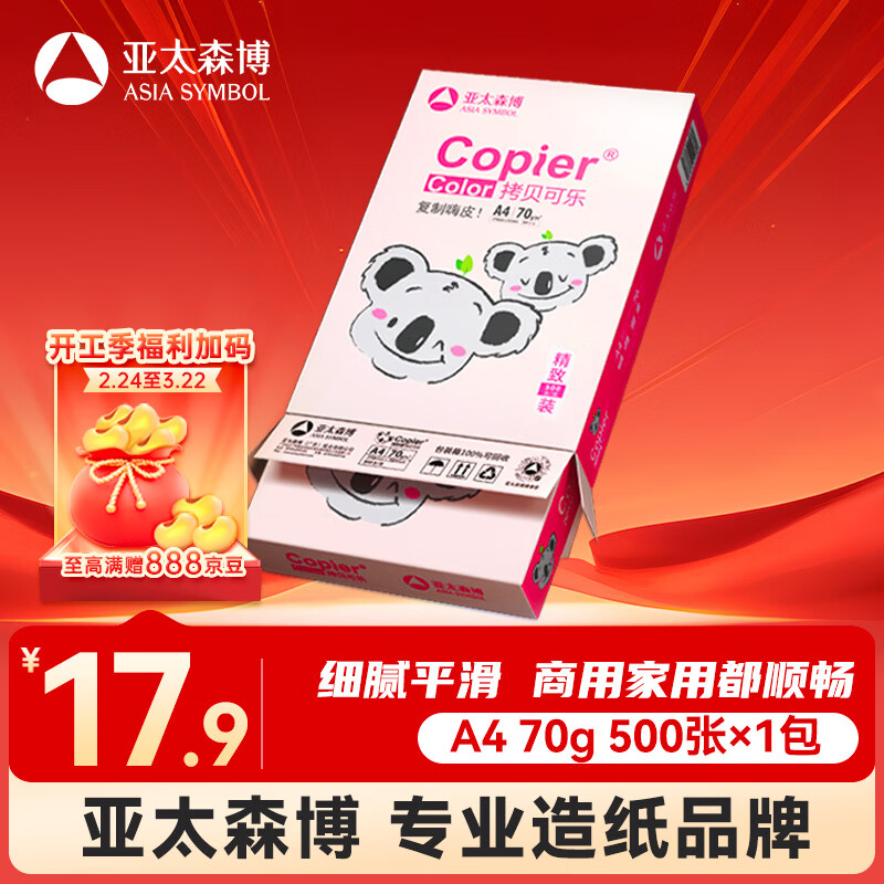自营百旺亚太森博粉考拉A4打印纸 70g单包装 500张复印纸 双面打印资料 高性价比草稿纸【经济家用款】