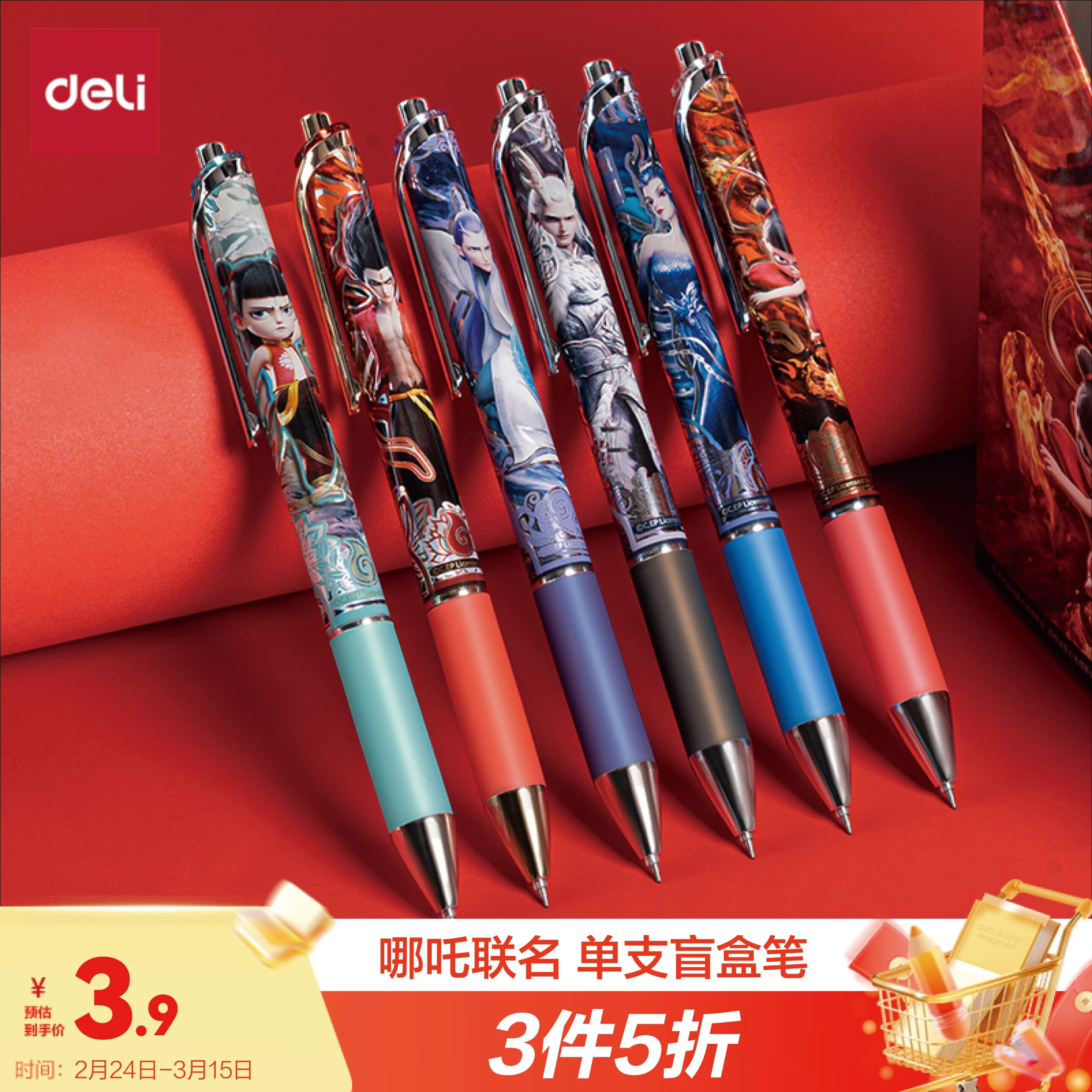 自营得力(deli)哪吒魔童敖丙按动盲盒中性笔 0.5mm双球珠ST笔头学生刷题笔考试笔文具周边 黑色单支随机发NZ003