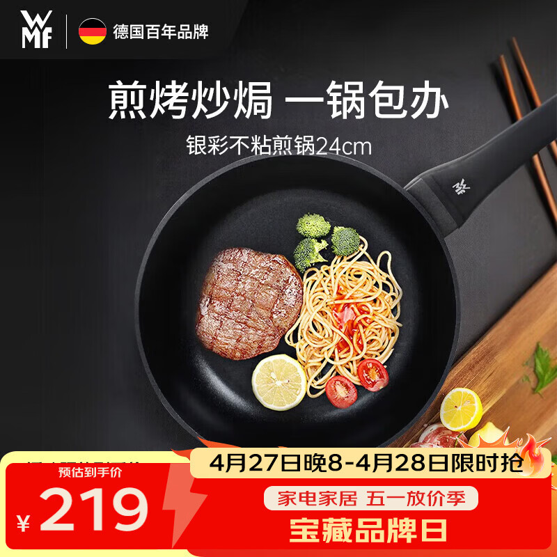自营WMF德国福腾宝平底锅煎锅不粘锅银彩不粘煎锅24cm厨房好物