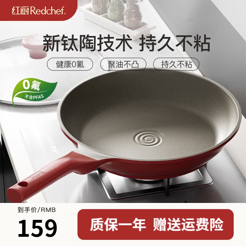 旗舰店红厨有钛煎锅不粘锅钛陶瓷无涂层平底锅家用煎蛋煎牛排电磁炉燃气灶用 升级钛陶瓷-专利聚油带盖 24cm