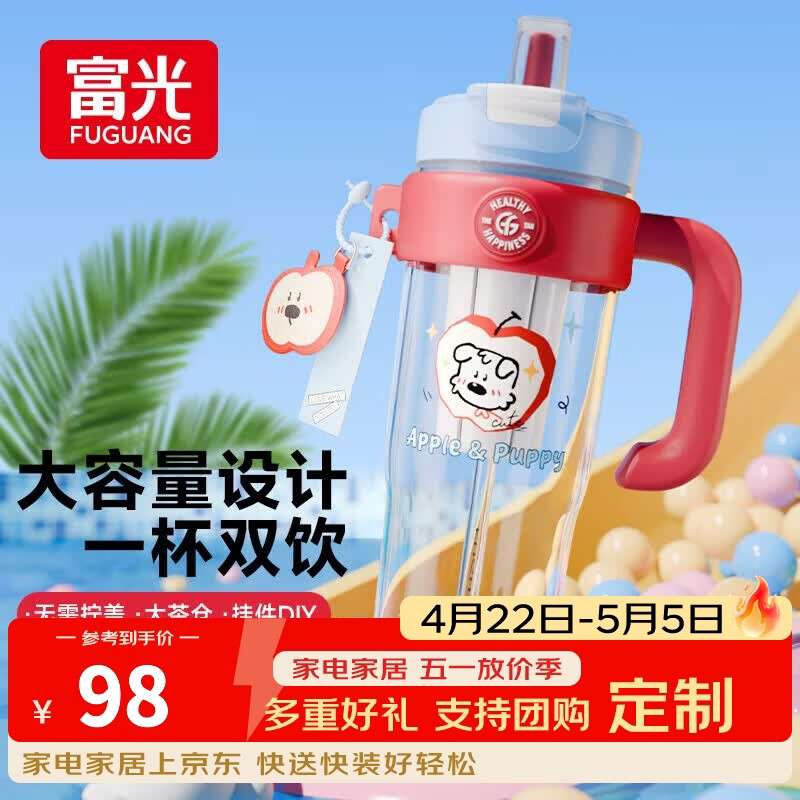 旗舰店富光巨无霸tritan水杯超大容量吸管塑料杯子女士冰霸杯高颜值夏季杯子 【新色】海盐小苹狗1260ml【茶仓款】