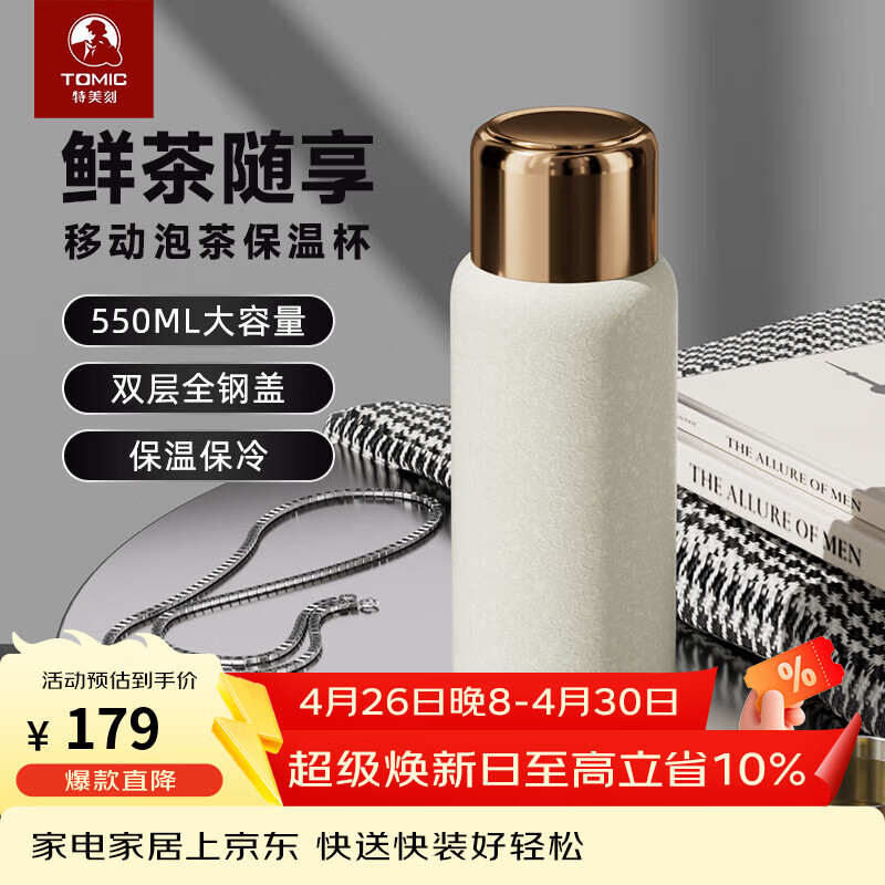 旗舰店特美刻(TOMIC)户外杯女士大容量水杯高颜值茶水分离焖茶杯男士泡生日新年礼物 【316内胆+316茶隔】白色550ml