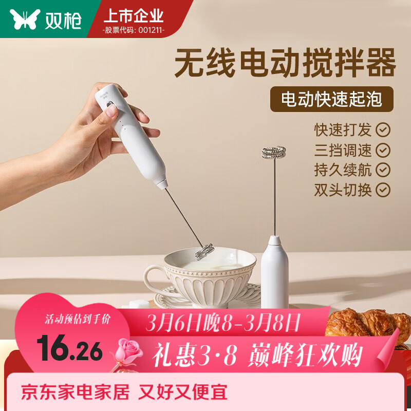 旗舰店双枪电动打奶泡器 咖啡打泡器 迷你奶泡机 牛奶搅拌器手持无线打发器 清新绿【三档调速*赠充电线】
