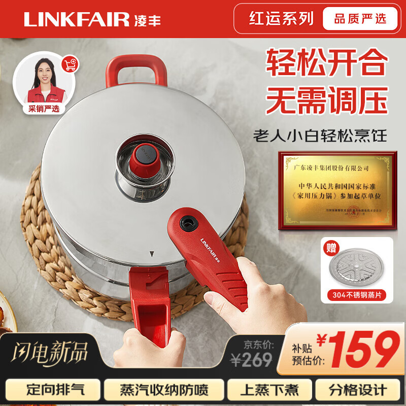自营凌丰(LINKFAIR)高压锅家用6L不锈钢防爆压力锅燃气电磁炉通用【京东限定】