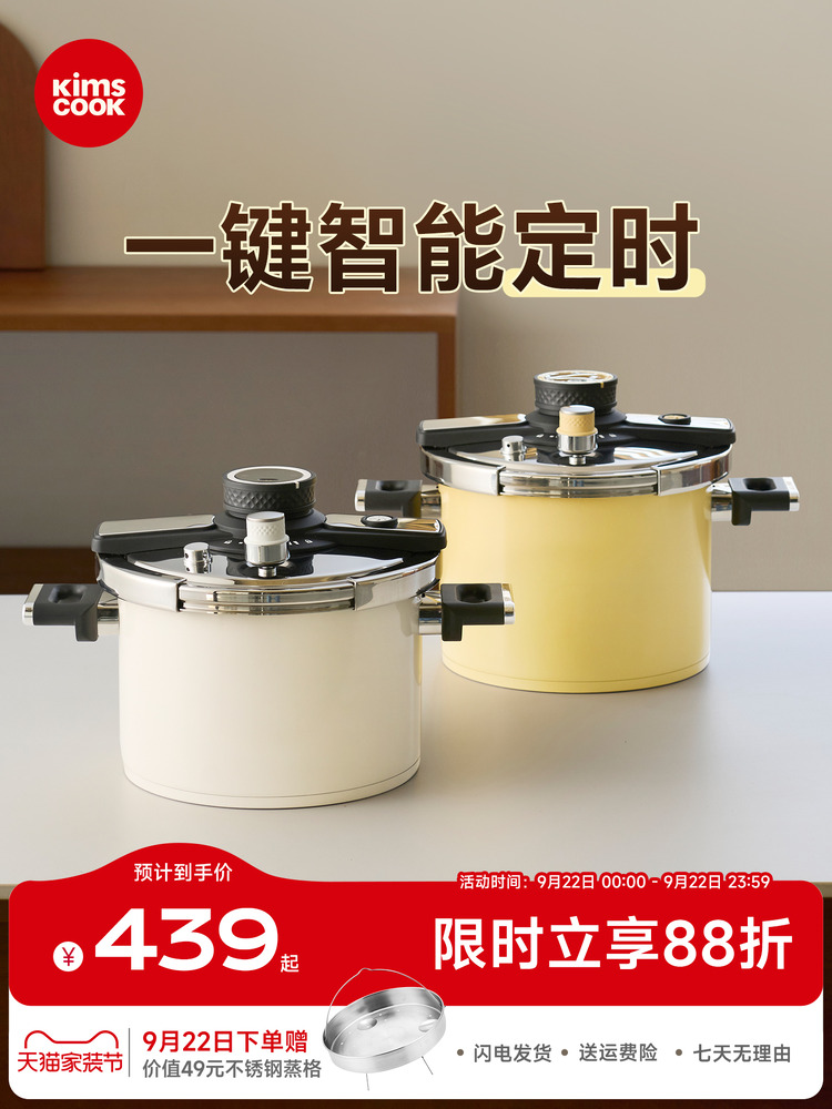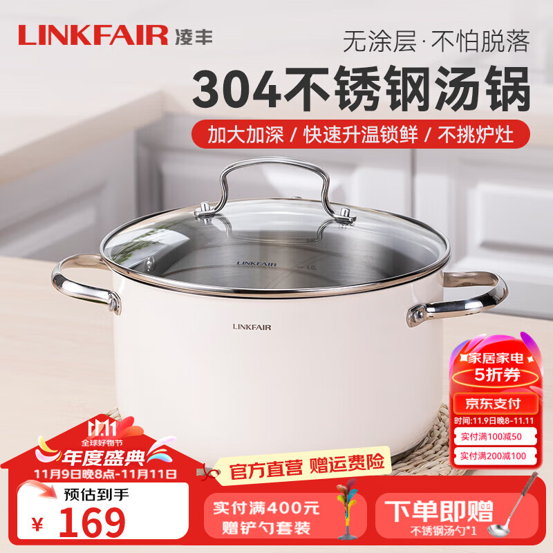旗舰店凌丰(LINKFAIR) 高压锅304不锈钢防爆压力锅家用燃气电磁炉通用 【100kPa】珍珠白 22cm 6L