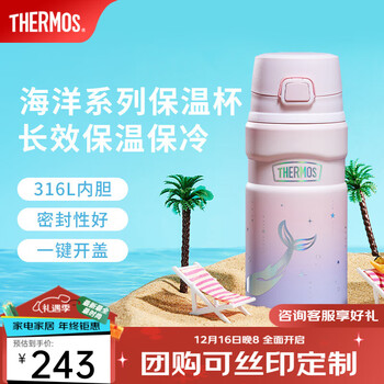 旗舰店膳魔师(THERMOS)保温杯大容量水杯吸管杯子学生运动水杯生日礼物海洋系列 TSK2保温杯(粉色) 500ml