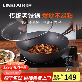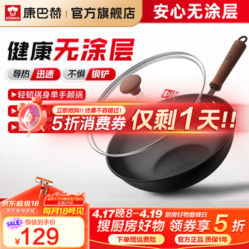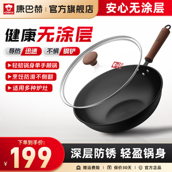 旗舰店康巴赫铁锅炒锅无涂层深氮防锈精铁炒菜锅平底家用炒勺电磁炉燃气灶通用 32cm