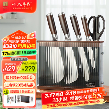 旗舰店十八子作 厨房刀具套装 砍骨刀切片辅食水果刀厨房剪刀阳江十八子菜刀套装 福船系列追月星槎套刀 5件套