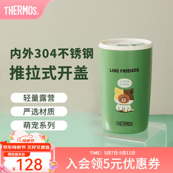 旗舰店膳魔师(THERMOS)Line Friends联名保温杯宠物系列猫猫狗狗大容量水杯吸管杯咖啡杯 猫猫Kitten布朗咖啡杯 415ml