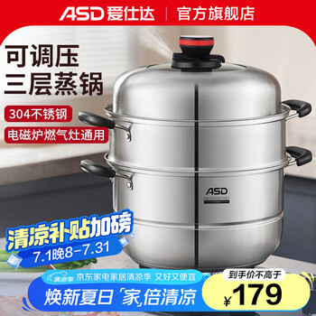 旗舰店爱仕达可调压蒸锅304不锈钢三层大容量家用蒸笼蒸馒头锅电磁炉煤气灶用 可调压三层蒸锅 30cm