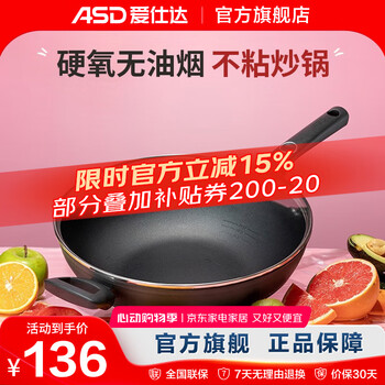 旗舰店爱仕达无油烟不粘锅炒锅 硬氧耐磨耐用油你控炒菜锅32cm 明火电磁炉通用 炒锅 黑色配件 32cm
