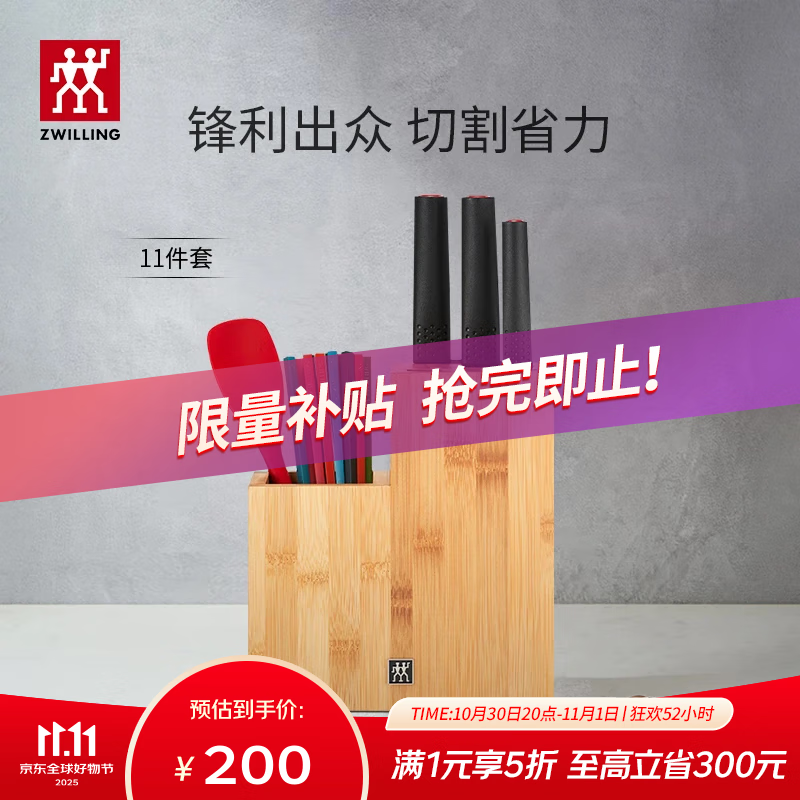 旗舰店双立人(ZWILLING)Feel系列刀具套装切菜刀水果刀多用切片刀切肉刀筷子硅胶铲铲子 一帆风顺刀具套装11件套