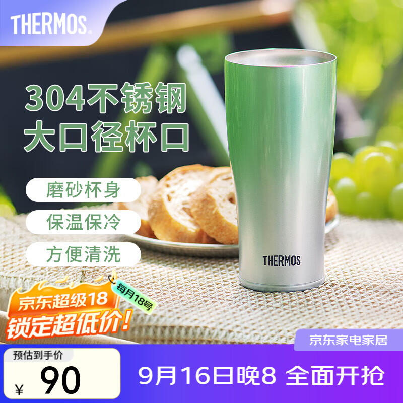 旗舰店膳魔师不锈钢咖啡杯啤酒杯可乐饮料家用保冷保温杯便携随行杯JDE 绿色 420ml