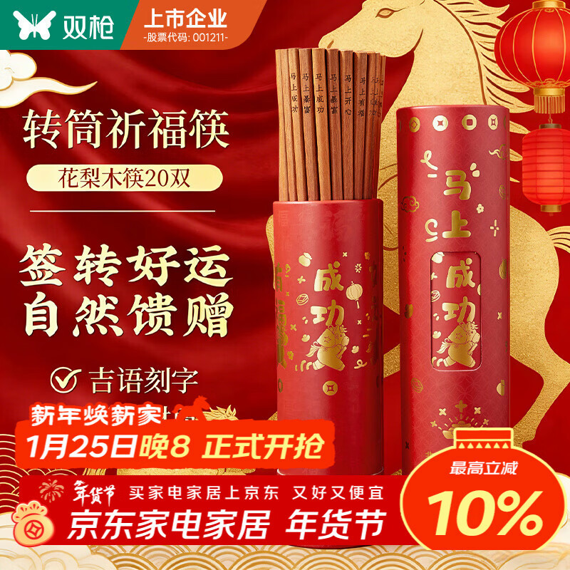 自营双枪花梨木好运筷 家用高档礼盒木筷子 家庭筷防滑不易发霉20双