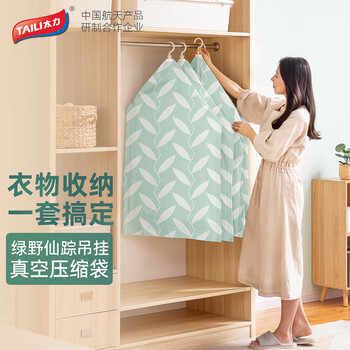 旗舰店太力羽绒服真空挂衣收纳袋衣服挂式压缩外套大衣西服防尘罩袋 1个装【105*70cm】