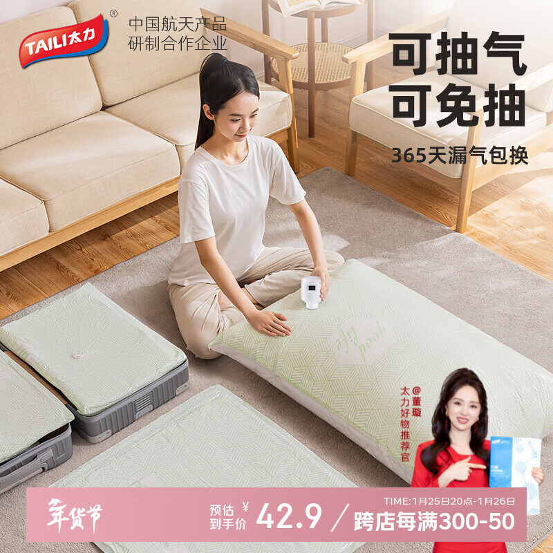 旗舰店太力真空压缩袋免抽气真空收纳袋衣服大号衣物棉被加厚立体整理袋 【盲盒】110*70cm 6个装+1电泵