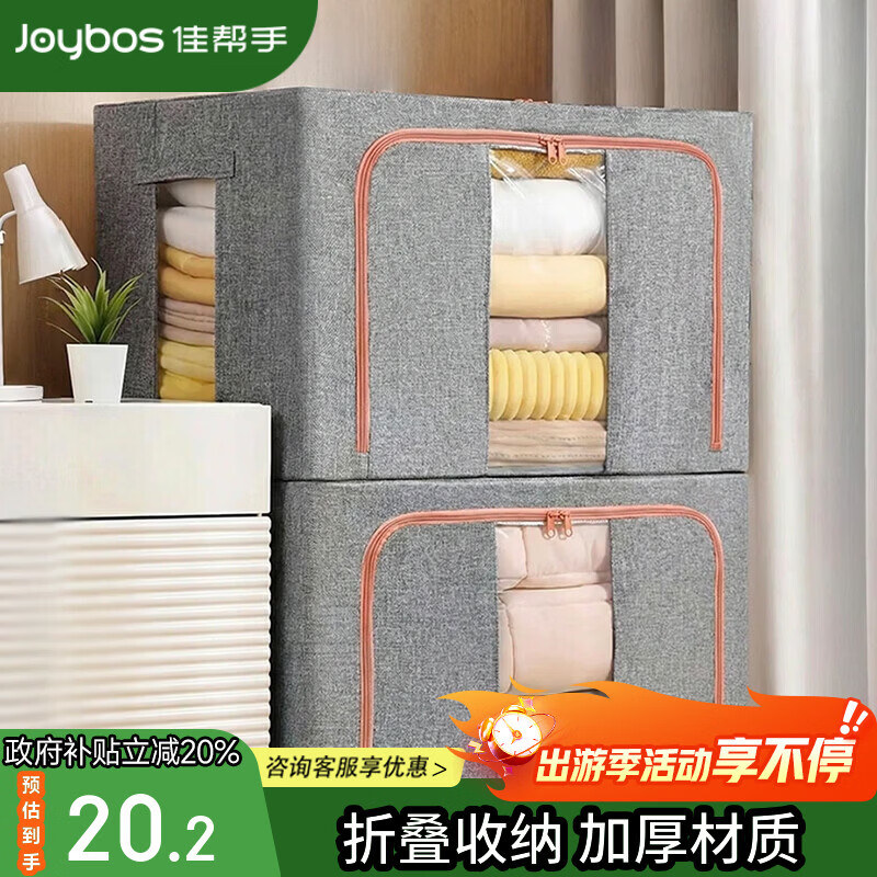 自营佳帮手衣服收纳箱布艺衣物整理盒大容量折叠箱衣柜家用神器 66L 1只装