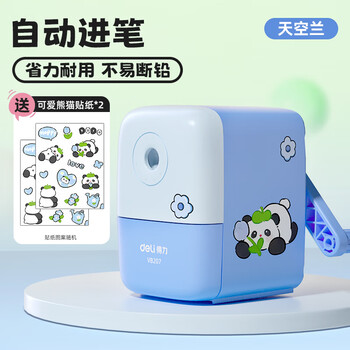 得力(deli)卷笔刀手摇铅笔削笔器铅笔刀小学生刨笔机儿童卡通自动进铅转笔刀美术生可用削笔刀 【超值款-自动进铅】天空蓝