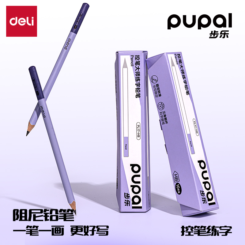 旗舰店【步乐阻尼铅笔】得力控笔书写练字铅笔小学生专用加粗铅芯三角杆
