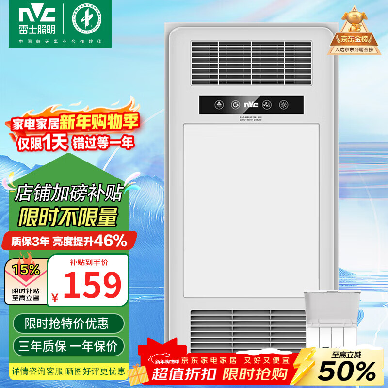 旗舰店雷士 浴霸 风暖浴霸双电机 取暖器排气扇照明一体浴室浴霸暖风 单核秒杀款~2400W浴霸琴键四合一