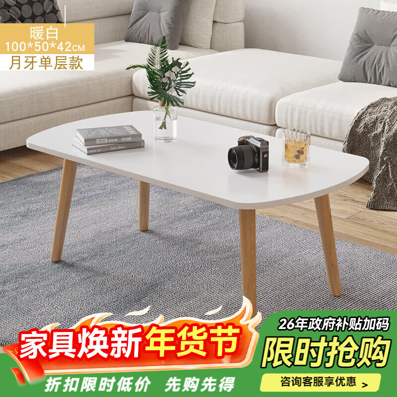 旗舰店修乐茶几客厅家用简约现代小户型茶台简易卧室出租屋创意多功能小桌子 【单层-月牙款】暖白色100cm
