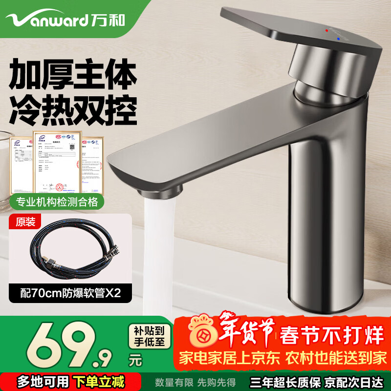 自营万和(Vanward)面盆水龙头洗手盆卫生间冷热双控浴室柜洗脸洗漱台盆水龙头通用