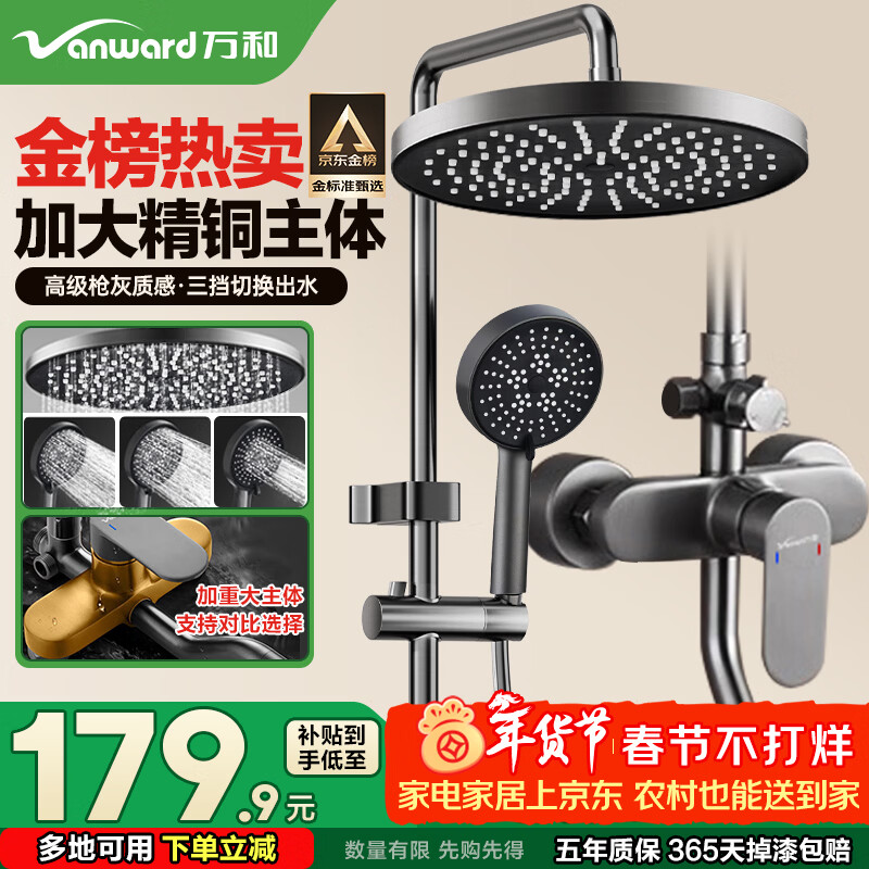 自营万和(Vanward)淋浴花洒套装精铜卫浴花洒全套一体式增压花洒喷头浴室淋浴器79H