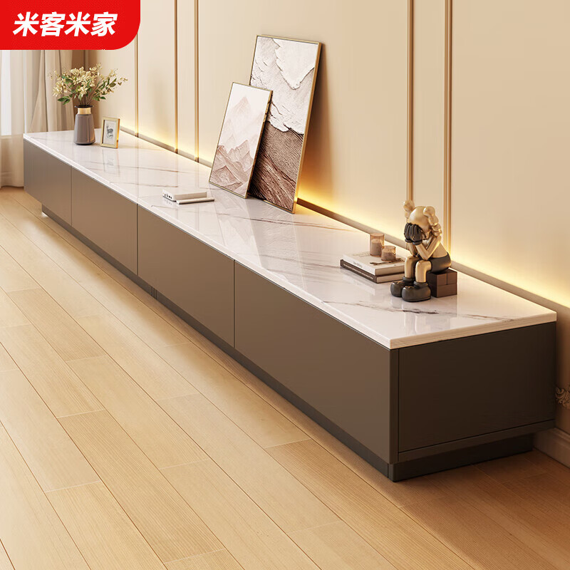 旗舰店米客米家电视柜落地2025客厅家用小户型靠墙储物柜一体新款茶几电视柜组合 【推荐款1.8米】灰色+白大理石纹 组装(自行组装)