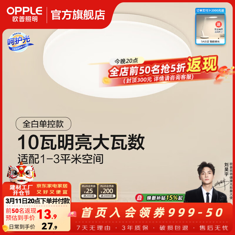 旗舰店欧普照明(OPPLE)卧室吸顶灯具走廊灯过道灯阳台玄关灯简约小吸顶灯三防一体快装 2只装阳台灯【白光】10W/770lm