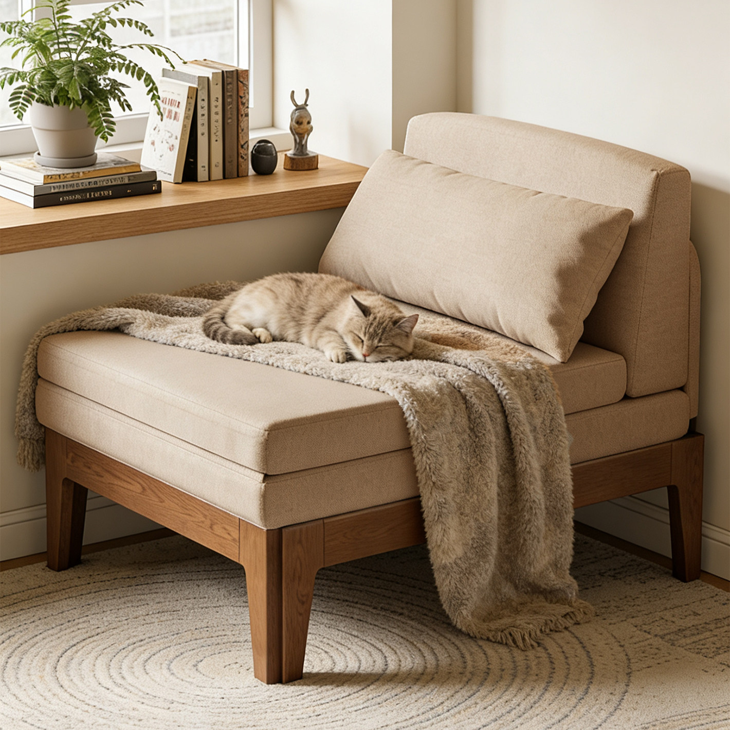 LISM创意家居实木现代简约家用轻奢北欧靠背其他日杂小件 原木色实木框架+浅灰皮坐垫 2把