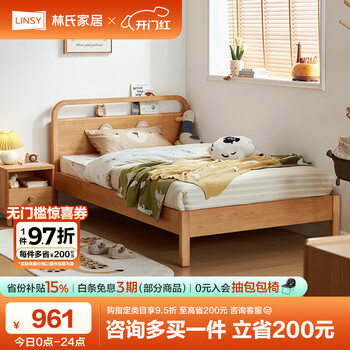 自营林氏家居原林氏木业儿童床北欧简约实木脚单人床KN4A普通床1.35m