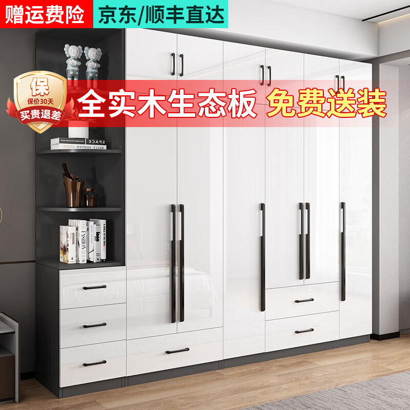 旗舰店熠梵森【包安装】衣柜家用卧室平开门实木三门四门大衣柜组合整体大衣橱 80两门主柜