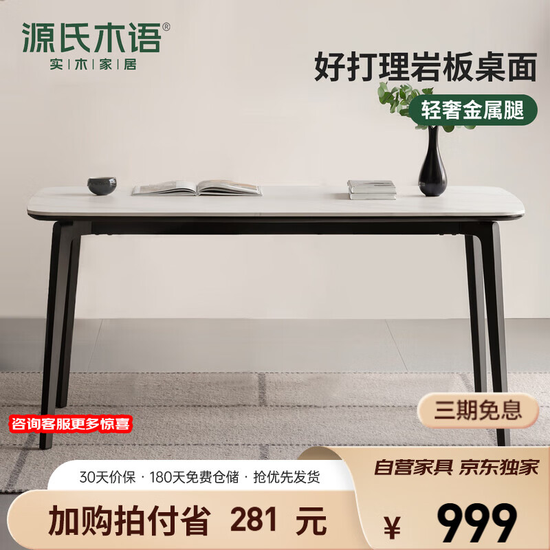 自营源氏木语实木岩板餐桌现代简约餐厅饭桌长方形靠墙轻奢吃饭桌子 1.4米单桌
