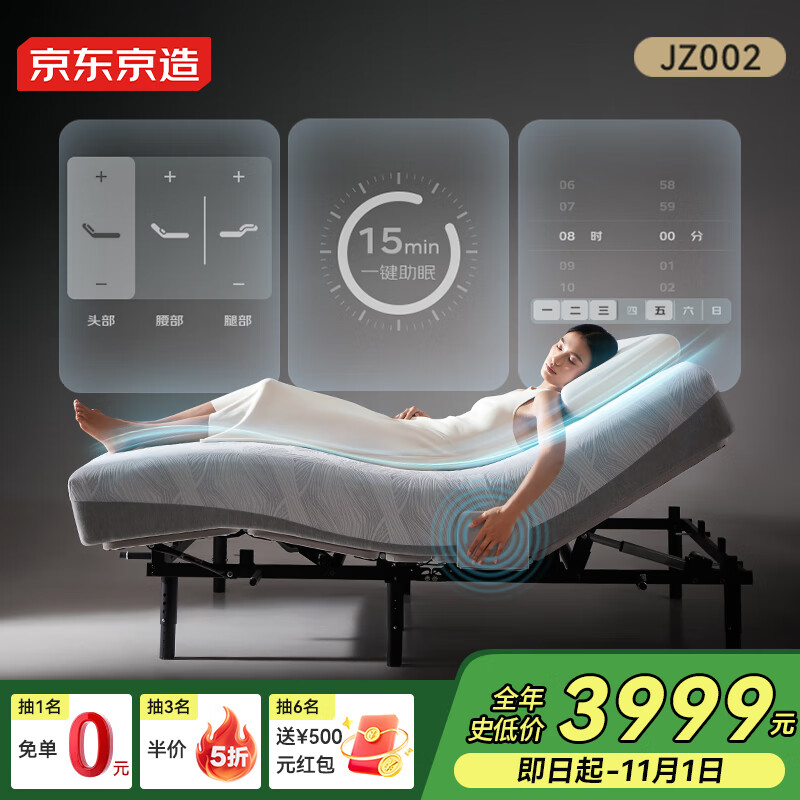 自营京东京造百变大师JZ002智能电动床 小户型硬床垫双人床 1.8×2米