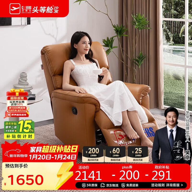 自营芝华仕(CHEERS)头等舱智能椅皮单椅单人沙发休闲功能躺椅摇摇转椅芝华士30676橙