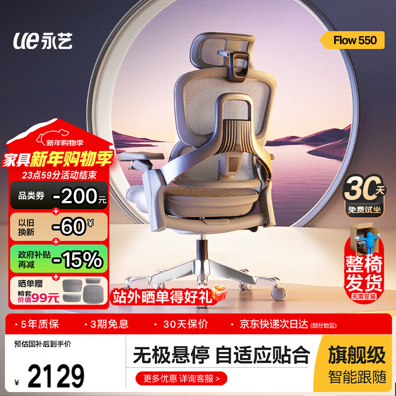 自营永艺Flow550人体工学椅电脑椅子护腰人工力学座椅久坐办公学习电竞椅