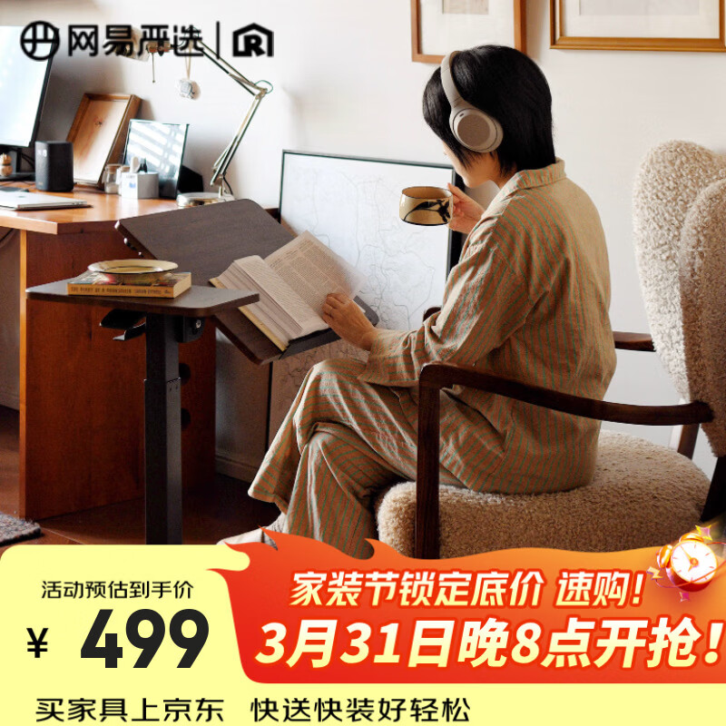 自营网易严选任意桌C70Max电脑桌床边桌升降桌家用可移动桌子桌板双面旋转48°