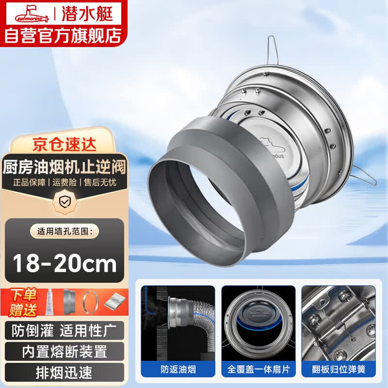 自营潜水艇(Submarine)GH160厨房油烟机止逆阀 公共烟道防味器不锈钢升级款
